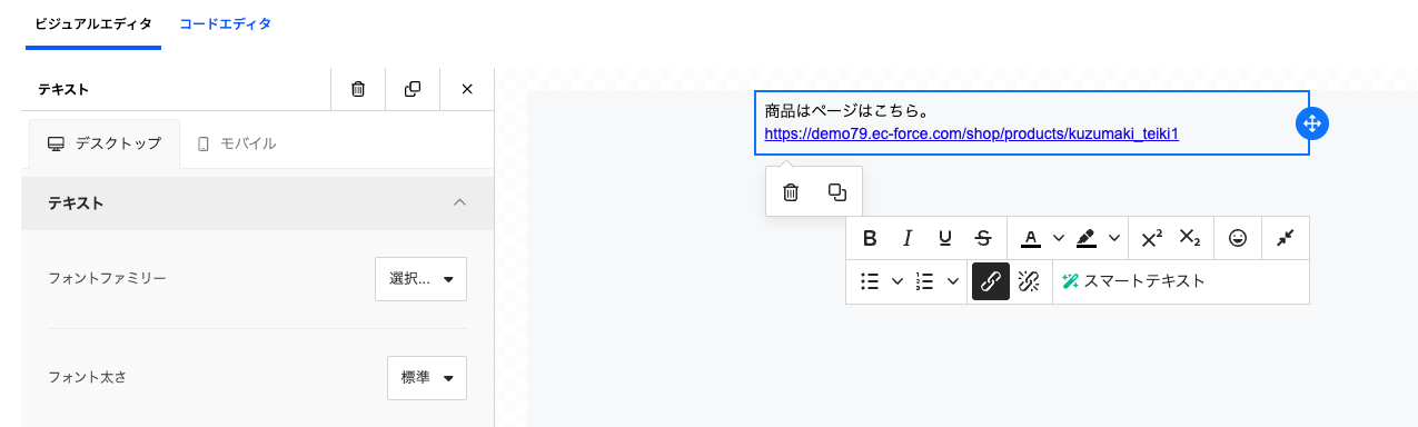 URLを直接コピー&ペーストすると自動でリンク化されますが、必ずリンク先が正しく設定されているか確認してください。